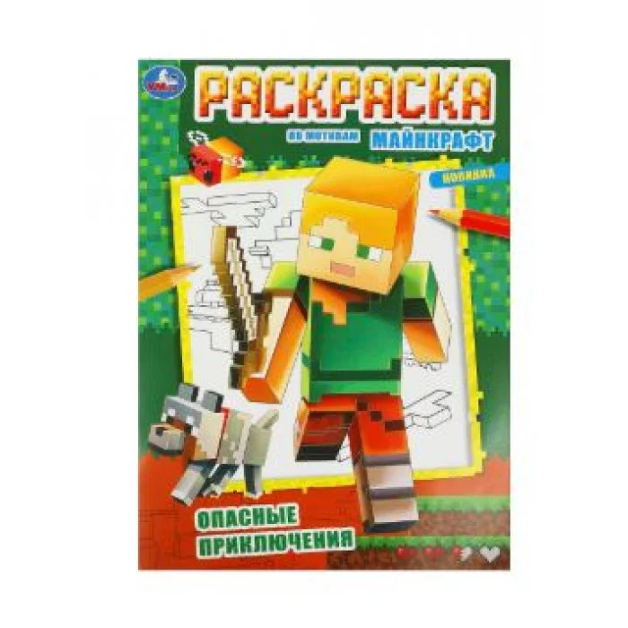 Опасные приключения По мотивам Майнкрафт Раскраска 214х290 мм Скрепка 16 стр Умка 978-5-506-09247-6