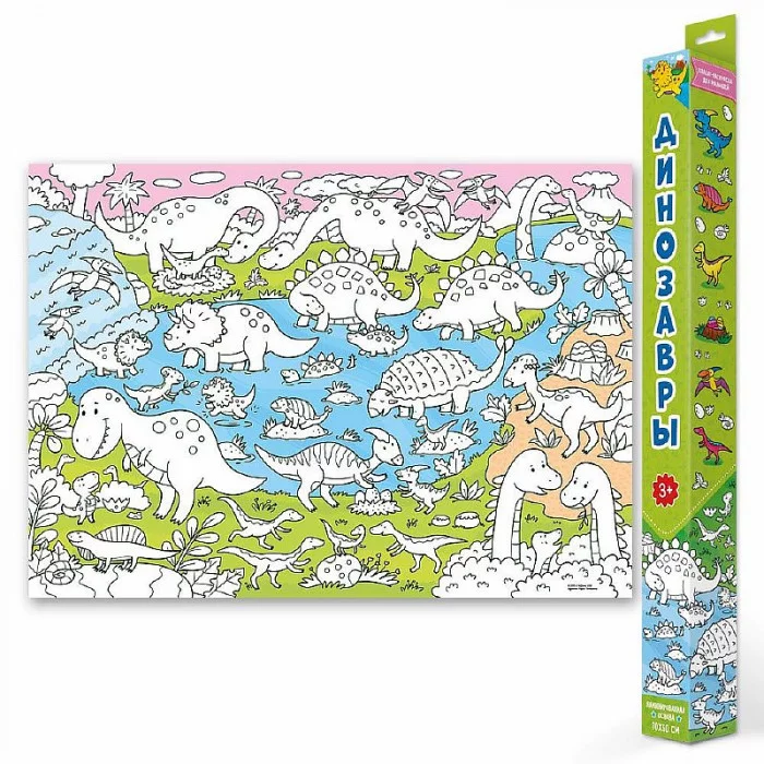 Плакат-раскраска для малышей. Динозавры. 70х50 см. ГЕОДОМ, изд.: Гео-дом