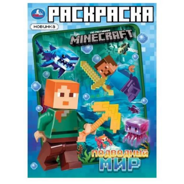 Подводный мир Раскраска по мотивам МАЙНКРАФТ 214х290 мм Скрепка 16 стр Умка 978-5-506-10107-9