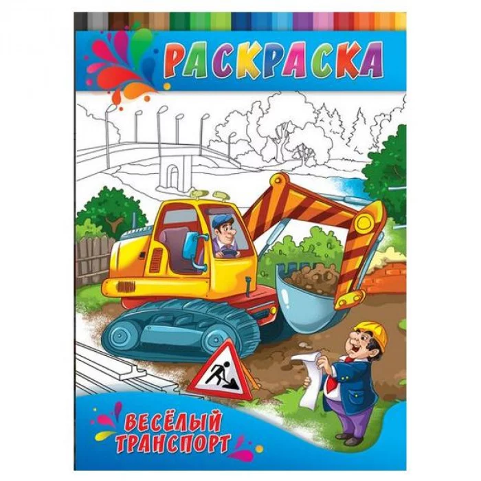 ПРОФ-ПРЕСС. Раскраска А4 (4л.,на скрепке,обл.-картон) Веселый транспорт Р-0335