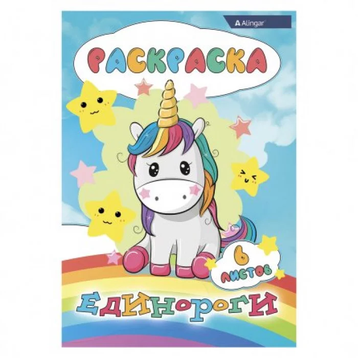Раскраска А4 Alingar "Единороги", 6 л., офсетная обложка