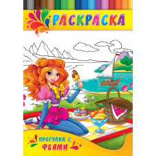 Раскраска А4 ДЛЯ МАЛЫШЕЙ. ПРОГУЛКА С ФЕЯМИ (Р-0151) 4л.,на скрепке,обл.-картон Р-0151