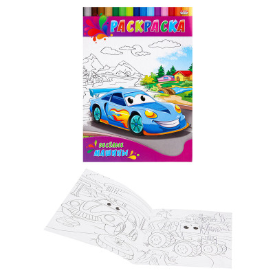 Раскраска А4 ДЛЯ МАЛЫШЕЙ. ВЕСЕЛЫЕ МАШИНЫ (Р-0148) 4л.,на скрепке,обл.-картон Р-0148