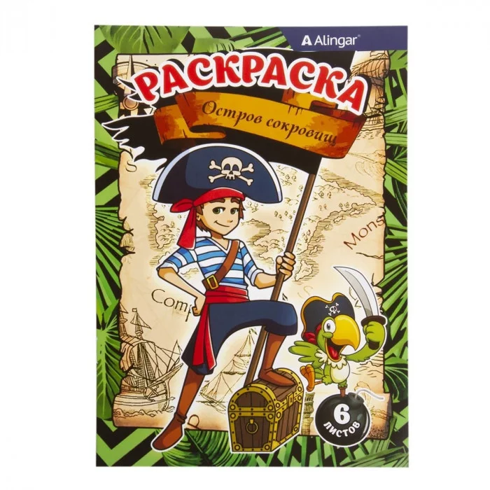 Раскраска А5, Alingar, "Пираты", 6л., мелов. обложка AL7657