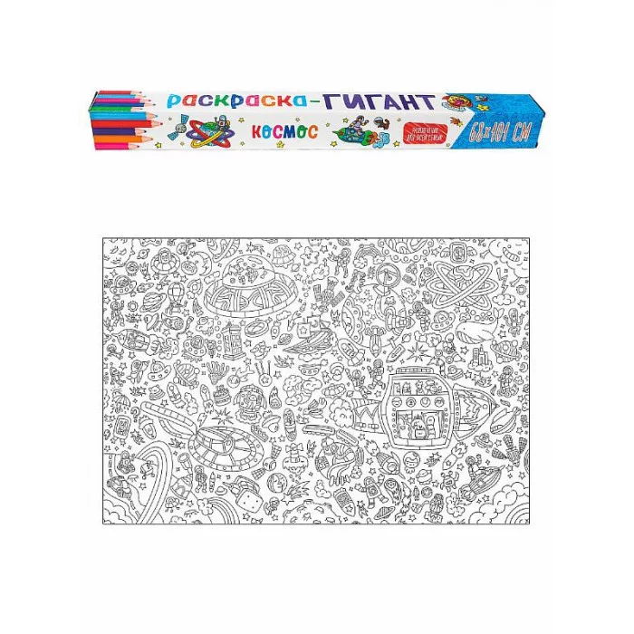 "Раскраска-гигант" - настоящее приключение для всей семьи. Благодаря размеру картинку смогут раскрашивать сразу несколько человек. Ламинированная основа позволит делать это даже на ковре. С помощью клеевых креплений раскрашенный плакат удобно повесить на стену и любоваться своим шедевром! Вместе с персонажами раскраски вы можете окунуться в удивительный мир космоса, динозавров, милых зверят или отправиться в путешествие вокруг света. "Раскраска-гигант" надолго увлечёт и ребёнка, и родителей.