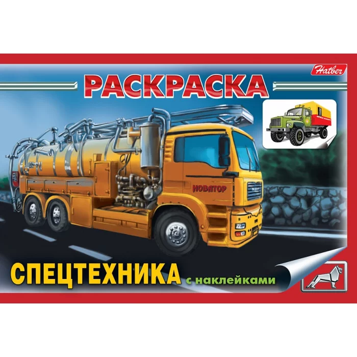 Раскраска книжка 4л А5ф с НАКЛЕЙКАМИ на скобе -Спецтехника- изд-во: Хатбер-Пресс