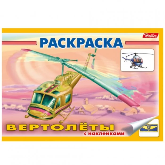 Раскраска книжка 4л А5ф с НАКЛЕЙКАМИ на скобе -Вертолёты-