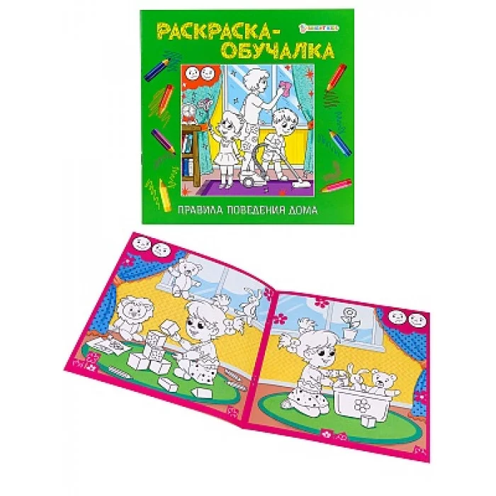 Раскраска-обучалка "ПРАВИЛА ПОВЕДЕНИЯ" ДОМА (Р-1807) 8л, на скреп,обл.-целл.карт,блок-офсет 215х215 Р-1807
