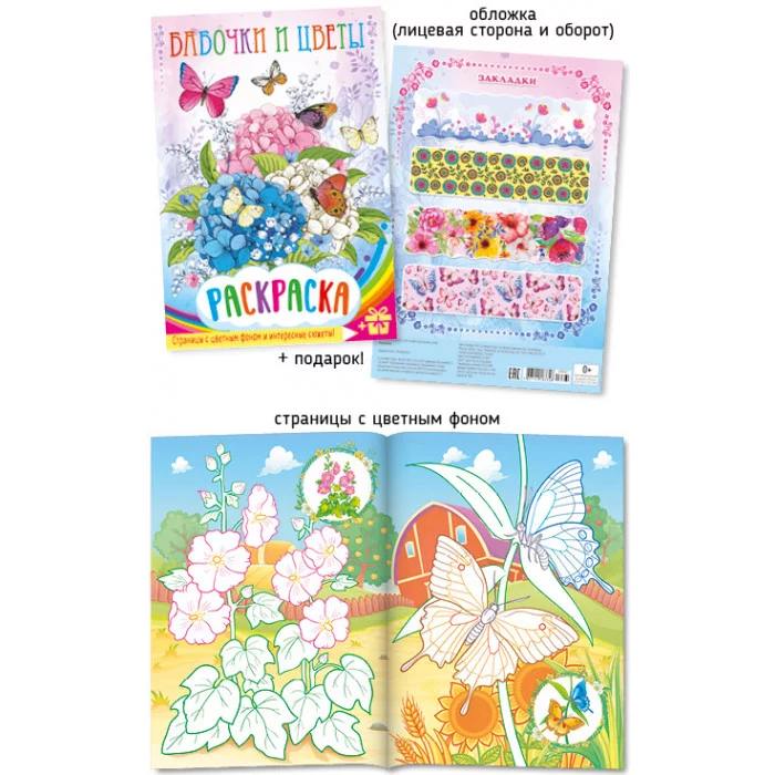 Раскраска ООО "ПолиПринт" А4 бабочки и цветы 28361