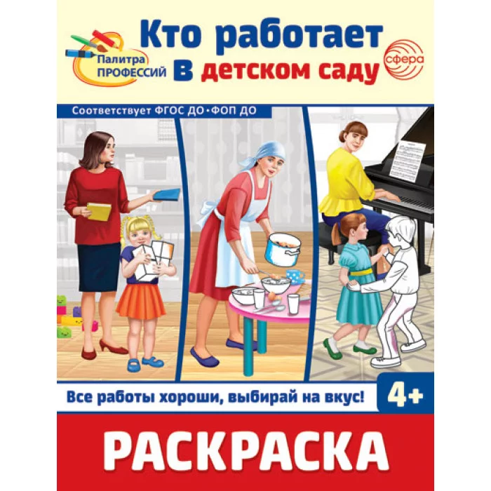 Раскраска. Палитра профессий. Кто работает в детском саду, 978-5-9949-3391-6