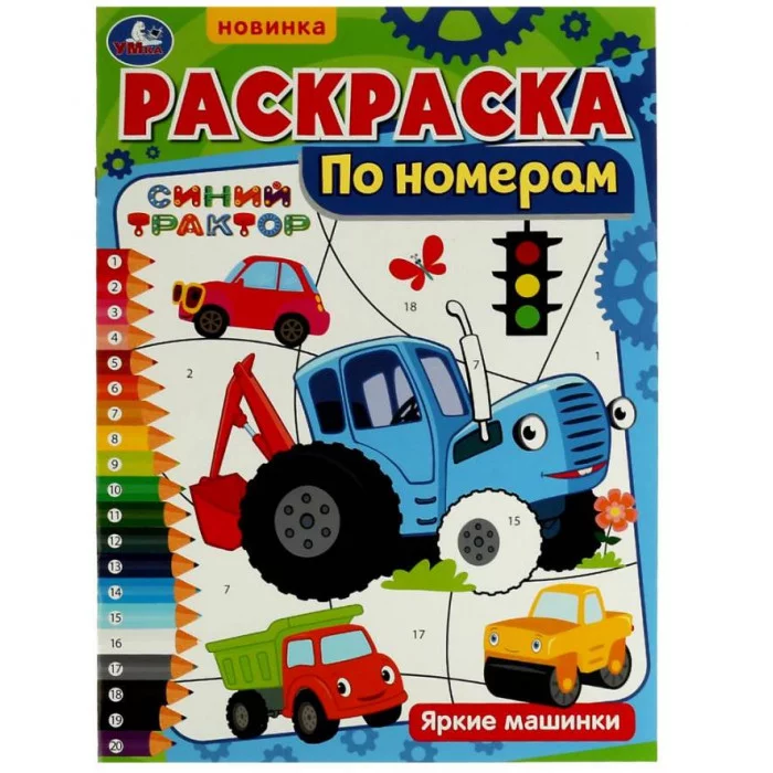 Раскраска по номерам Яркие машинки Синий Трактор 210х290 мм 16 стр Скоба Умка 978-5-506-07315-4