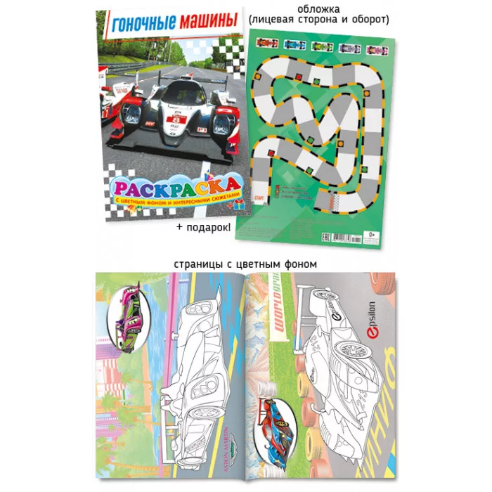 Раскраска с игрой-ходилкой А4 488-4 Гоночные машины