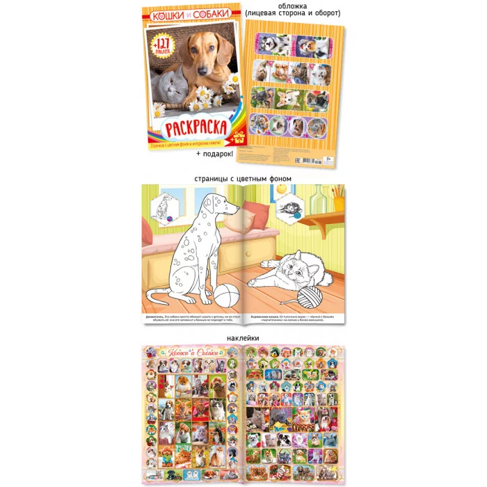 Раскраска с наклейками А4 589-1 Кошки и собаки