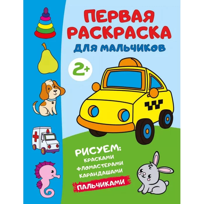 "Первая раскраска для мальчиков" с цветными образцами — то, что нужно малышу, который учится рисовать. 48 страниц творческого веселья: крупные картинки с толстым контуром. Плотная, качественная бумага. Все иллюстрации подписаны.