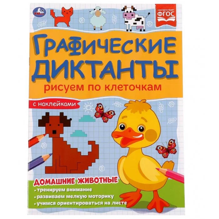 Графические диктанты с наклейками «Домашние животные» из серии «Рисуем по клеточкам» ТМ «УМка» станет отличным развивающим подарком для ребёнка: