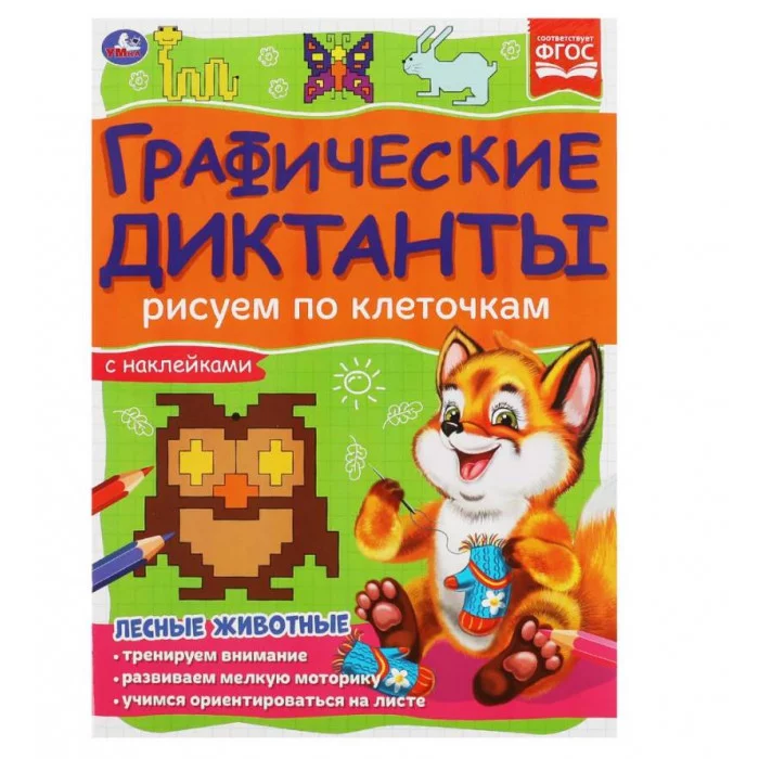 Лесные животные Графические диктанты 210х290 мм 16 стр + 4 стр стикер Умка 978-5-506-06987-4