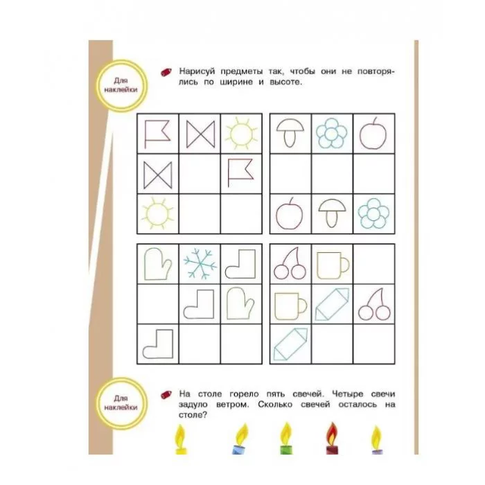 В каждом пособии есть поощрительные наклейки. Они помогут вам оценить выполненные ребёнком задания и мотивировать вашего маленького ученика для дальнейших занятий по книге.