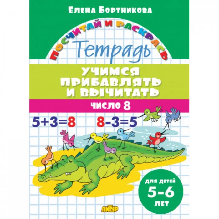 Учимся прибавлять и вычитать. Число 8 (для детей 5-6 лет), изд.: Литур, авт.: Бортникова Е.Ф. 978-5-9780-1428-0