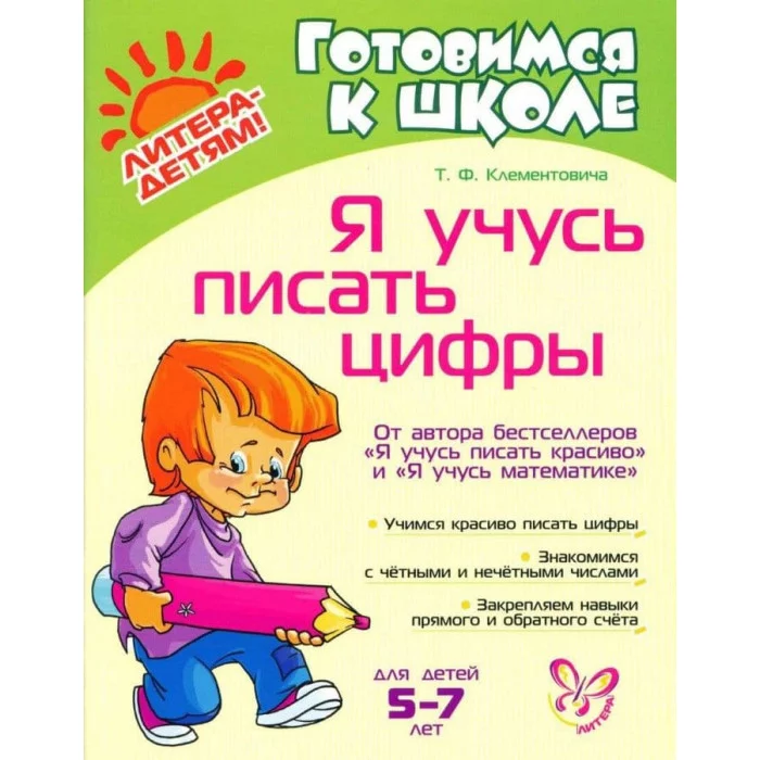 Книга не только поможет вашему ребёнку научиться писать цифры правильно, быстро и аккуратно, но и разобраться, чем цифра отличается от числа, познакомиться с обозначением цифр в древности, освоить порядковый счёт, узнать о таких базовых математических понятиях как числовой ряд, чётные и нечётные числа.