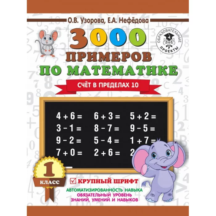 В пособии собраны 3000 новых примеров по математике по одной из базовых для первого класса тем – «Счёт в пределах 10». Как и любая другая тема, она требует внимательного осмысления и прочного закрепления. Особенностью этого издания является крупный шрифт.