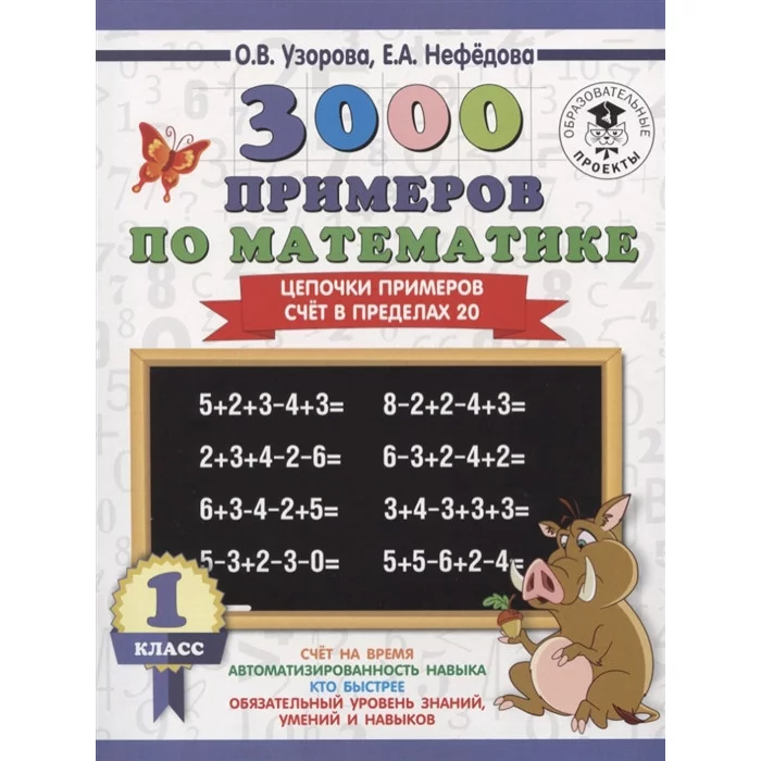 3000 примеров для начальной школы Узорова О.В. 3000 примеров по математике. 1 класс. Цепочки примеров. Счёт в пределах 20 3