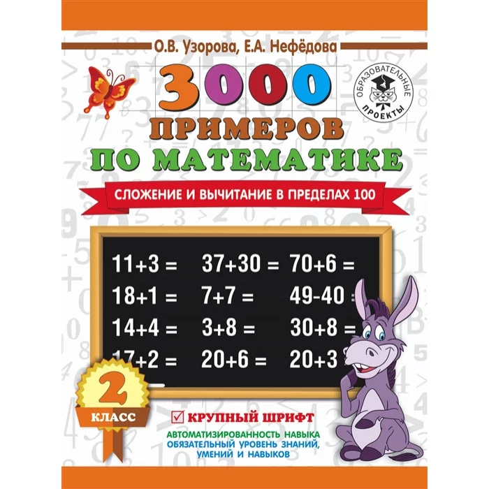 3000 примеров для начальной школы Узорова О.В. 3000 примеров по математике. 2 класс. Сложение и вычитание в пределах 100. Крупный шрифт 3