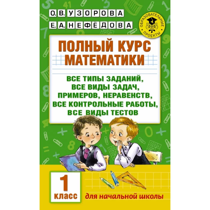 Академия начального образования Узорова О.В. 3 Полный курс математики: 1-й кл.: все типы заданий, все виды задач, примеров, неравенств, все контрольные