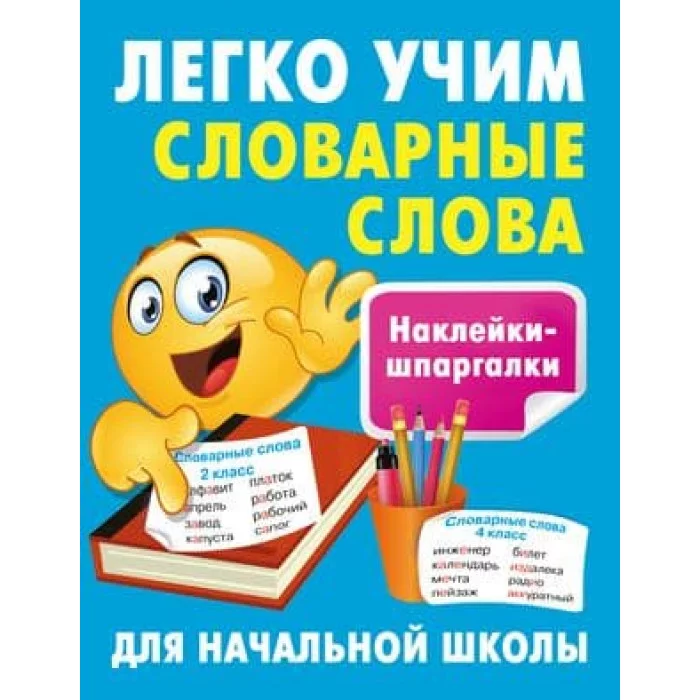 В пособии для учеников 1−4 классов "Легко учим словарные слова" — все самые эффективные способы запоминания словарных слов. Ученик будет составлять из словарных слов предложения, запоминать слова с помощью ассоциаций, разгадывать кроссворды и ребусы со словарными словами. Отдельные элементы текста в пособии выделены цветом — это упрощает запоминание информации и повышает эффективность учебного процесса. Запомнить слова будет ещё легче благодаря цветным наклейкам-шпаргалкам. Их можно наклеить на обложку тетради или учебника — таким образом, подсказки всегда будет перед глазами учащегося.