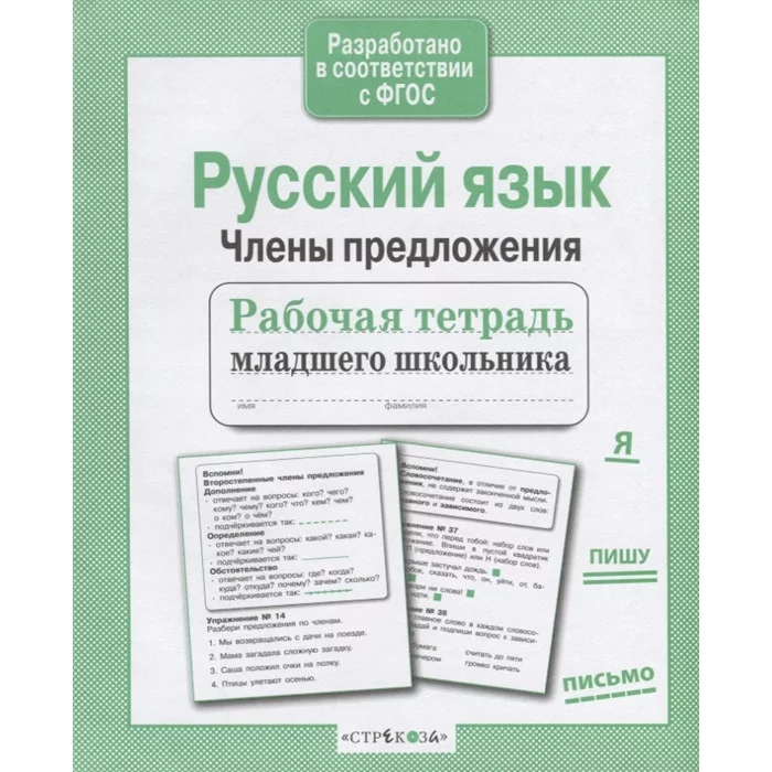 Р/т младшего школьника. Русский язык. Члены предложения Стрекоза Бахурова Евгения, Гребенник Ольга Ольга, Зимнохо Анна 978-5-9951-4086-3