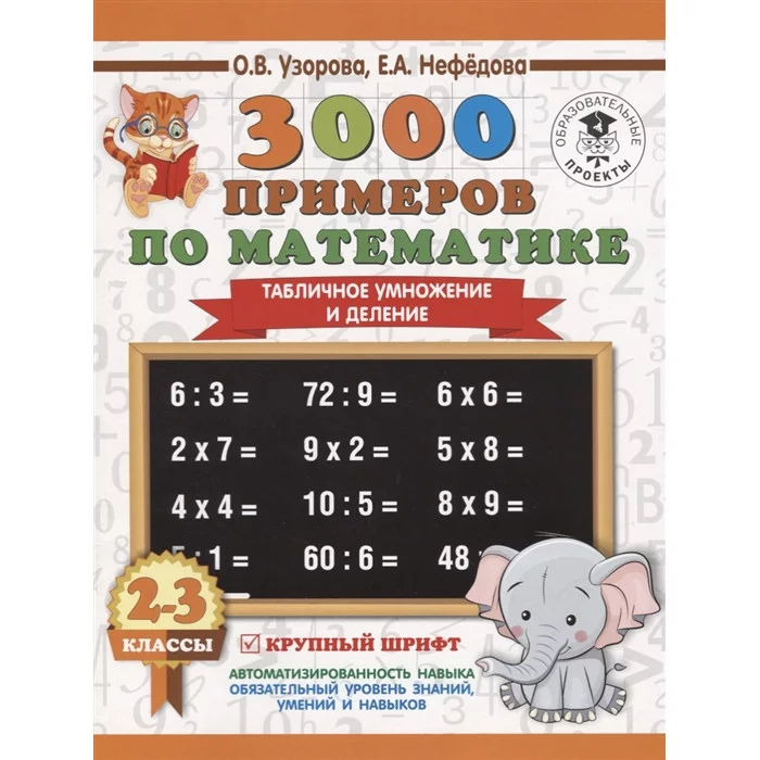 Узорова О.В. 3000 примеров по математике. 2-3 классы. Табличное умножение и деление. Крупный шрифт