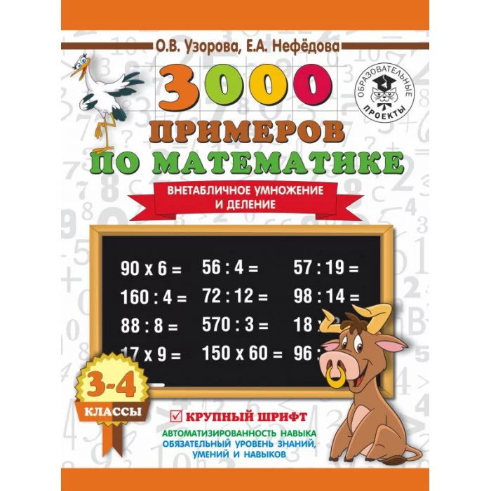 Узорова О.В. 3000 примеров по математике. 3-4 класс. Внетабличное умножение и деление. Крупный шрифт. Новые примеры
