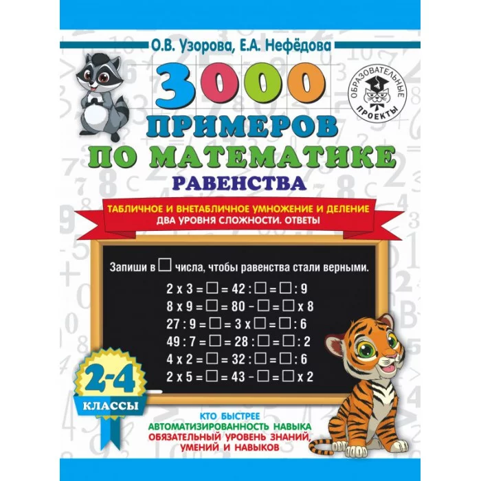 Узорова О.В. 3000 примеров по математике. Равенства. Табличное и внетабличное умножение и деление. Два уровня сложности. Ответы. 2-4 классы