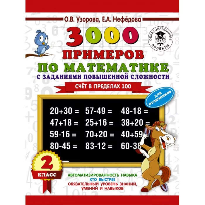 Узорова О.В. 3000 примеров по математике с заданиями повышенной сложности. Для отличников. Счёт в пределах 100. 2 класс