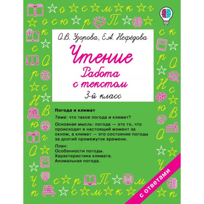 «Чтение. Работа с текстом. 3 класс» — это пособие для учеников 3-го класса. С его помощью учащиеся потренируют технику чтения, а заодно научатся работать с текстом: извлекать из него полезную для себя информацию, определять тему, главную мысль и тип текста.
