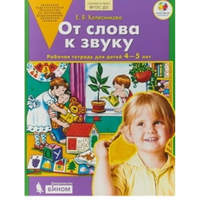 Рабочая тетрадь "От слова к звуку" - приложение к книге "Развитие фонематического слуха у детей 4-5 лет", которая входит в авторскую программу "От звука к букве", содержание которой соответствует образовательной области "Речевое развитие".