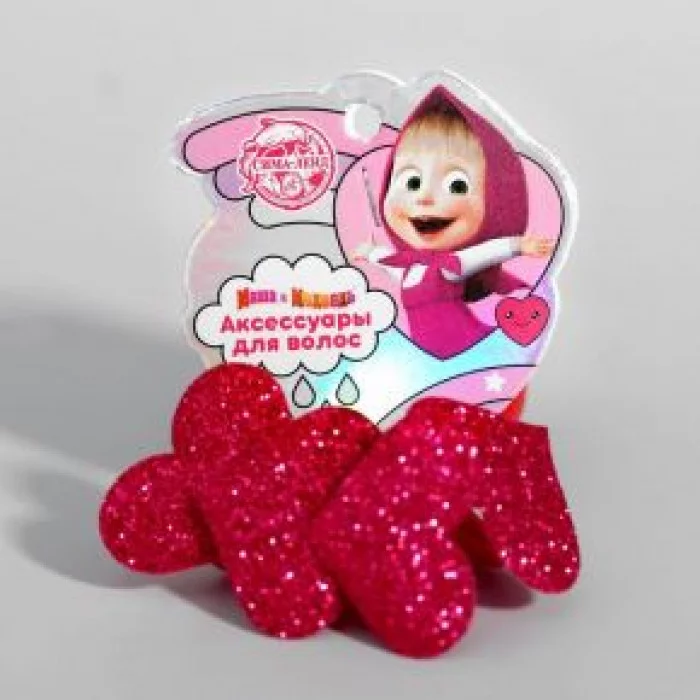 Набор резинок, Маша и Медведь "Сердца" розовые с блестками, 4 шт, 6х5 см 4675395