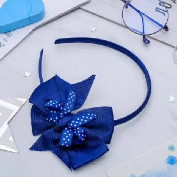 Ободок для волос "Школьница" 1 см бант в горошек, синий 3763532