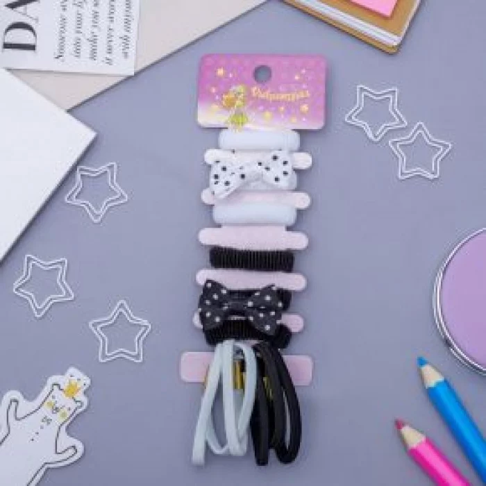 Резинка для волос "Бантик" (набор 12 шт) горох, чёрно-белый 2541755