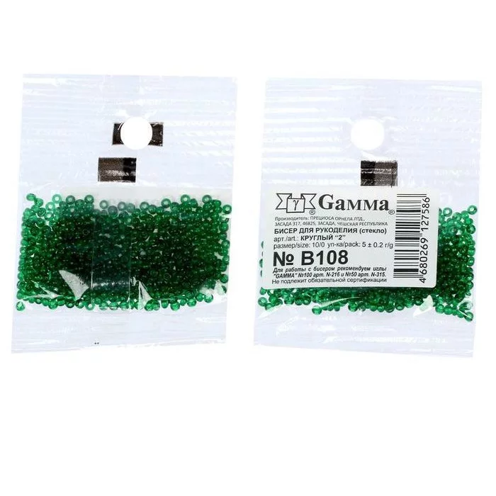 Бисер Чехия "GAMMA" круглый "2" 10/0 5гр (В108 зеленый) Чешский ##name##, от которого не отвести взгляд. А сколько можно найти применений этим славным бусинкам! Каждая из них выполнена из высококачественного стекла, поэтому их исключительно гладкая поверхность позволяет создавать аккуратные узоры, так как каждая бисеринка плотно прилегает друг к другу.