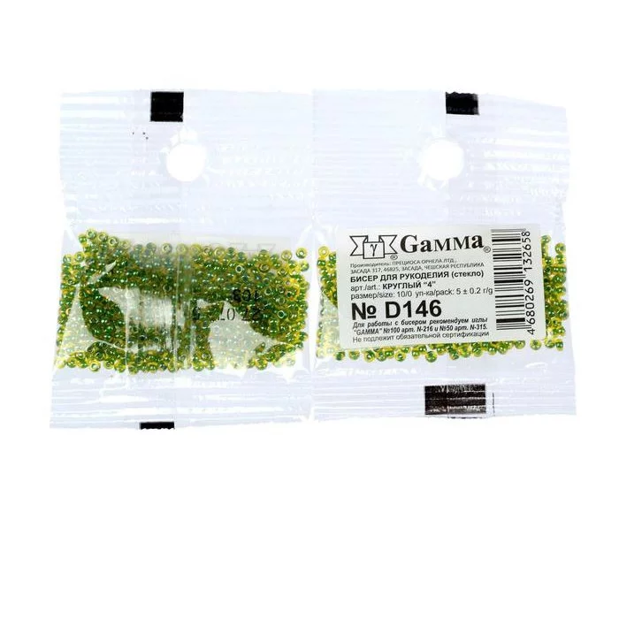 Бисер Чехия "GAMMA" круглый "4" 10/0 5гр (D146 зеленый) Чешский ##name##, от которого не отвести взгляд. А сколько можно найти применений этим славным бусинкам! Каждая из них выполнена из высококачественного стекла, поэтому их исключительно гладкая поверхность позволяет создавать аккуратные узоры, так как каждая бисеринка плотно прилегает друг к другу.