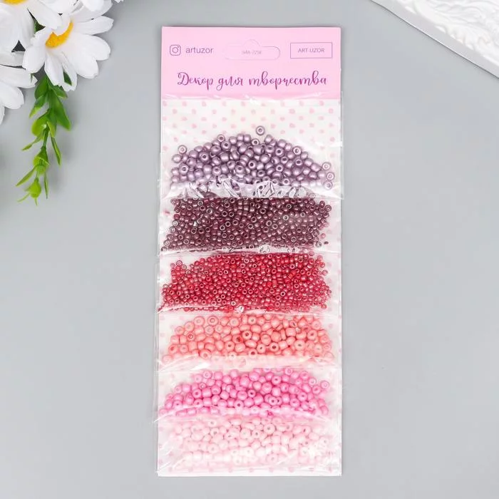Бисер круглый "Оттенки розового" 6 цветов х 10 грамм 6074988