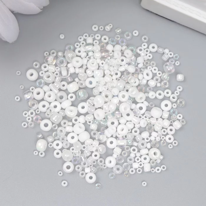 Бисер стекло 6/0 - 15/0 "Ассорти белое" d=1,5-4 мм, н-р 10гр 7463313