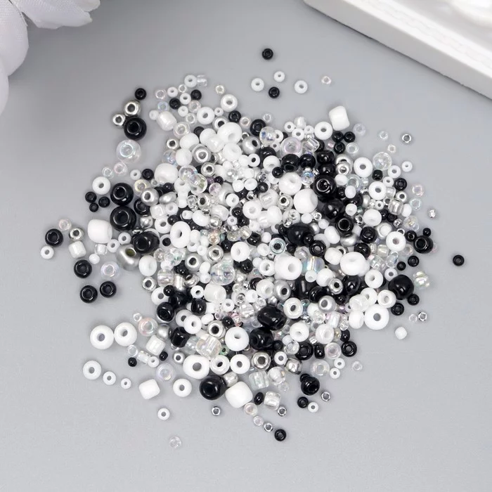 Бисер стекло 6/0 - 15/0 "Ассорти чёрно-белое" d=1, 5-4 мм, н-р 10гр 7463305