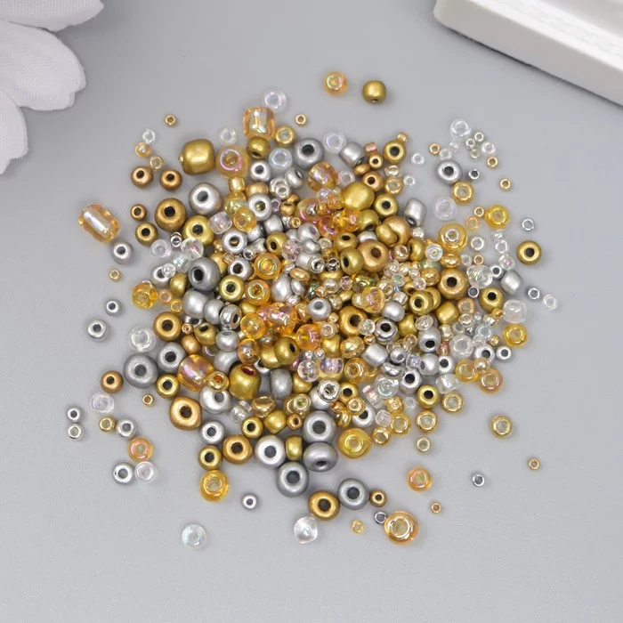 Бисер стекло 6/0 - 15/0 "Ассорти золото и серебро" d=1, 5-4 мм, н-р 10гр 7463312