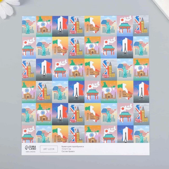 Бумага для скрапбукинга "Путешествия" плотность 180 гр 15, 5х17 см 7907895