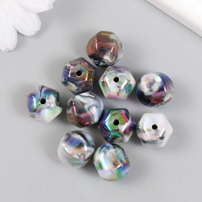 Бусина пластик для творчества "Чёрно-белые грани. Голография" МИКС 1,4х1,4х1,4 см