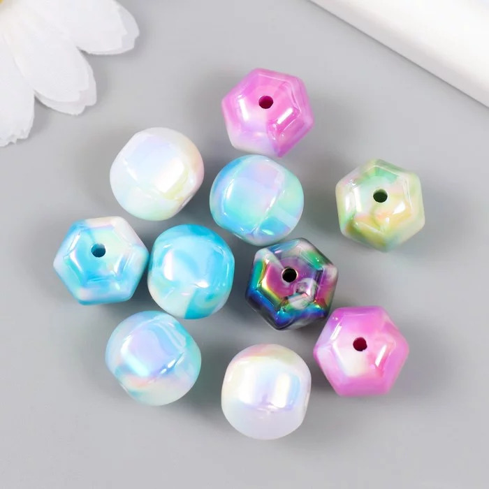 Бусина пластик для творчества "Разноцветные грани. Голография" МИКС 1, 4х1, 4х1, 4 см 9767064