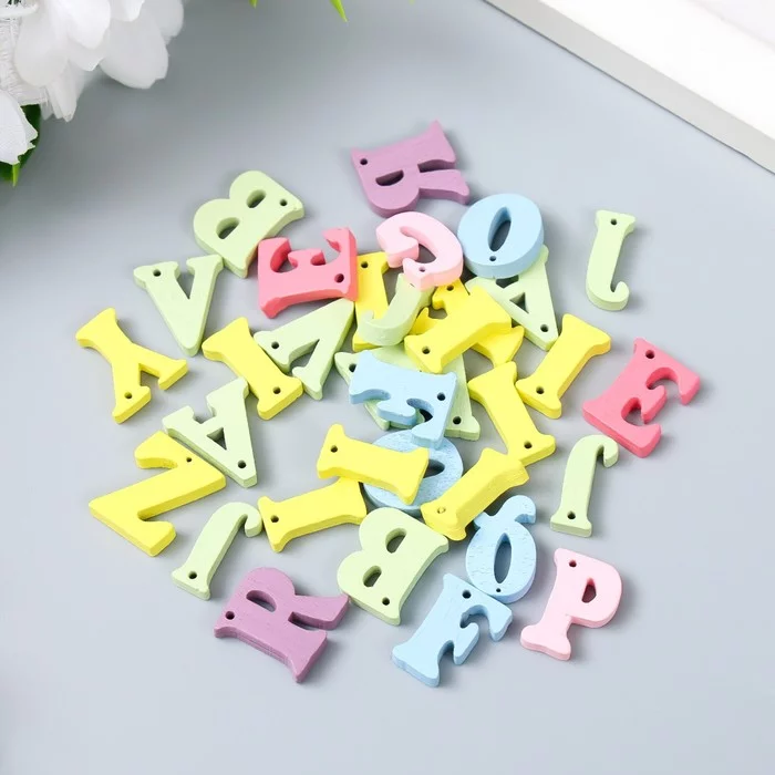 Бусины для творчества дерево "Английский алфавит" набор 30 шт 1,5х1,5х0,3 см 9282105