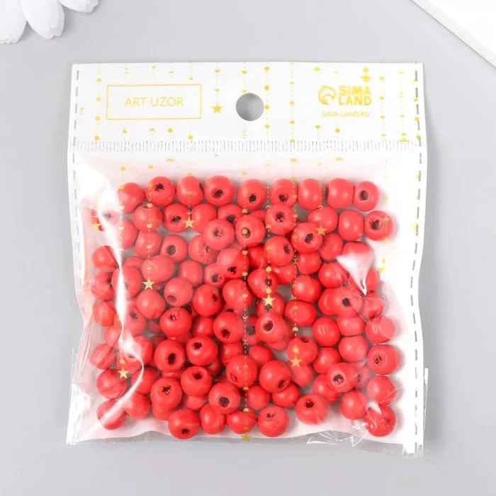 Бусины для творчества дерево "Атомный красный" d-0, 8 см, набор 20 гр 9463329