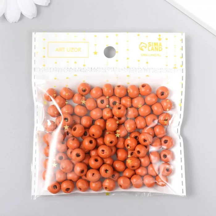 Бусины для творчества дерево "Кирпично красный" d-0,8 см, набор 20 гр 9463316